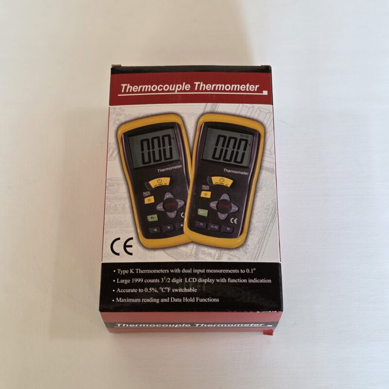 Termómetro digital diseñado para mediciones precisas mediante sensores tipo termocupla. Su entrada simple permite registrar la temperatura en un único